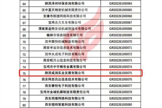 陜西咸潤實(shí)業(yè)發(fā)展有限公司憑借優(yōu)秀的研發(fā)實(shí)力、自主創(chuàng)新能力及科學(xué)的管理經(jīng)驗(yàn),經(jīng)過層層篩選和嚴(yán)格審核,正式通過認(rèn)定,成為國家級高新技術(shù)企業(yè)。