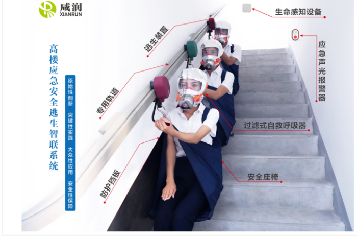 “高樓應(yīng)急安全逃生智聯(lián)系統(tǒng)”項目,可有效解決高層建筑及各類人員密集場所內(nèi)涉險人員的群體性緊急疏散難題, 在傳統(tǒng)“防、消、救”的層面上,增加了“逃”的功能。當發(fā)生火災等緊急情況時,第一時間實現(xiàn)聯(lián)動報警,百米高層3分鐘快速逃生,高效有序撤離至地面安全地帶。同時結(jié)合物聯(lián)網(wǎng)+功能,對樓內(nèi)人員進行生命探測、位置追蹤,為消防隊員提供精準救援信息,將主動自救互救和協(xié)同組織救援緊密結(jié)合,有效提高救援全過程質(zhì)效,降低人員密集場所群死群傷重特大火災事故的發(fā)生幾率,扭轉(zhuǎn)重特大事故多發(fā)被動局面,減少人員傷亡及財產(chǎn)損失,全方面保障人民生命財產(chǎn)安全,填補人員密集場所緊急疏散基礎(chǔ)設(shè)施建設(shè)空白。