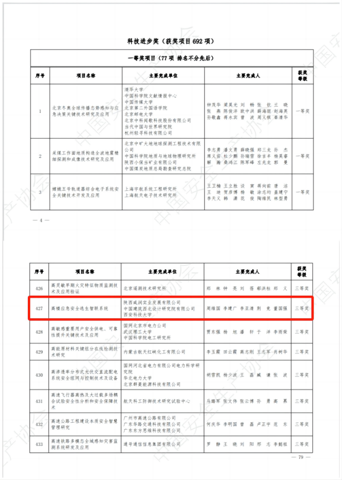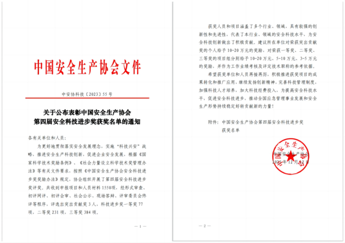 “中國安全生產(chǎn)協(xié)會第四屆安全科技進步獎”!